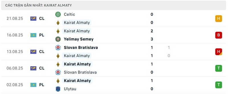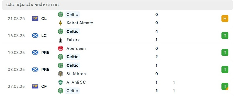 Cả Almaty vs Celtic đều có phong độ ổn định dựa theo các nhận định bóng đá gần đây. Almaty đã thể hiện sự kiên cường và khả năng phòng ngự xuất sắc, vượt qua ba vòng loại để tiến vào vòng đấu này, bao gồm chiến thắng luân lưu trước Slovan Bratislava. Đội bóng Kazakhstan cũng đang đứng thứ hai tại giải quốc nội, cho thấy sự ổn định của họ.