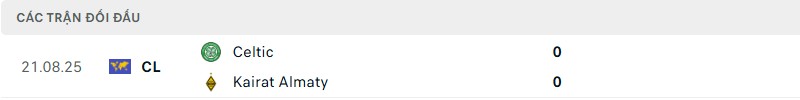 Lịch sử đối đầu giữa Almaty vs Celtic
