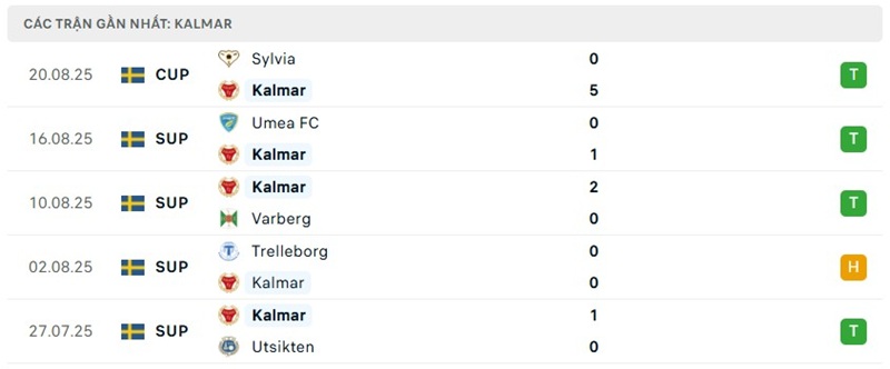 Kalmar đang có một mùa giải ấn tượng tại Superettan, đứng thứ hai với 38 điểm sau 19 vòng. Phong độ gần đây của họ rất thuyết phục khi bất bại 6 trận liên tiếp bao gồm 4 thắng và 2 hòa. Điều này cho thấy sự ổn định và hiệu quả trong lối chơi mà huấn luyện viên đã xây dựng, biến sân nhà thành một pháo đài bất khả xâm phạm.