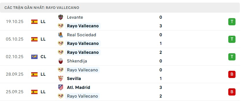 Phong độ Rayo Vallecano