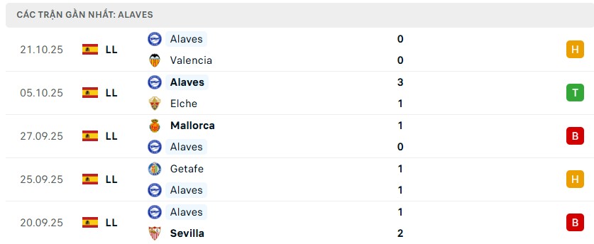 Trận đấu gần nhất, Alaves hòa không bàn thắng với Valencia trong một thế trận mà họ cầm bóng tới hơn 60%. Antonio Blanco là nhân tố nổi bật khi giúp đội kiểm soát khu trung tuyến hiệu quả. Tuy nhiên, việc không tận dụng được cơ hội vẫn là vấn đề lớn với Alaves, bởi dù sút nhiều nhưng khả năng dứt điểm của họ còn hạn chế. Trước đó, chiến thắng 3-1 trước Elche trước kỳ nghỉ quốc tế phần nào đã cởi bỏ áp lực tâm lý, song đội bóng này vẫn cần duy trì sự ổn định nếu muốn hướng đến vị trí trong top 10.