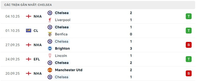 Phong độ của Nottingham vs Chelsea gần đây